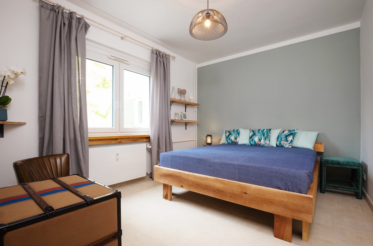 Schlafzimmer mit Doppelbett 200x200 cm